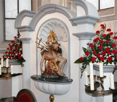 Anna Salzmann: In der lauretanischen Litanei wird die Gottesmutter als geheimnisvolle Rose tituliert und angerufen. So möchte auch ich meine Beitrag leisten und die Kirche schmücken als Dank an den Schöpfer der Vielfalt und Pracht der Blumen und Sträucher, auch zur Freude der vielen Pilger und Kirchenbesucher. An den Feiertagen überlasse ich das „Zieren“ unserem Profi und freue mich, wenn ich die kunstvollen Gestecke von Rudi Waibel genießen kann.