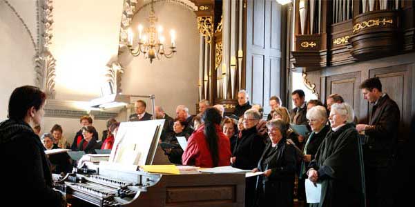 Neben dem Wort und der Stille ist der Gesang die wohl bekannteste Form des Gebetes und der liturgischen Gestaltung. Im Basilikachor Rankweil, der zurzeit aus 38 Sängerinnen und Sängern besteht, dürfen wir uns auf eine qualitätvolle und treue Chorgemeinschaft verlassen, die sich vor allem der Gottesdienstgestaltung in der Basilika widmet und klassische Mess-Kompositionen von W. A. Mozart, J. Haydn und F. Schubert, Motetten vom Barock bis in die Gegenwart sowie gelegentlich Gospels und Spirituals singt. Im Basilikachor gibt es auch eine Menge gemeinschaftsfördernder Aktivitäten wie einen jährlichen Ausflug, einen Wandertag, das Nikolauskränzchen, der Jassabend, regelmäßige Radtouren u. v. m. Wie bei den meisten Chören gibt es immer Bedarf an „frischen Stimmen“; der Chor freut sich über jede Anfrage und jedes Interesse, im Chor mitzusingen.